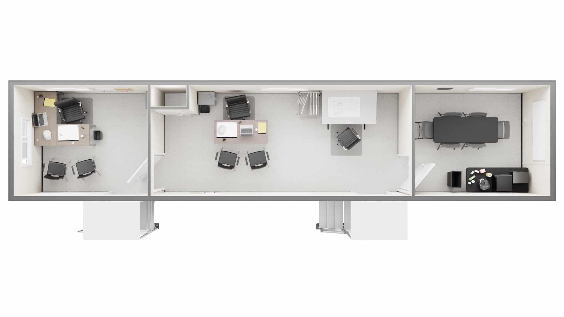 10’ x 50’ Office Trailer Floor Plan with Furniture